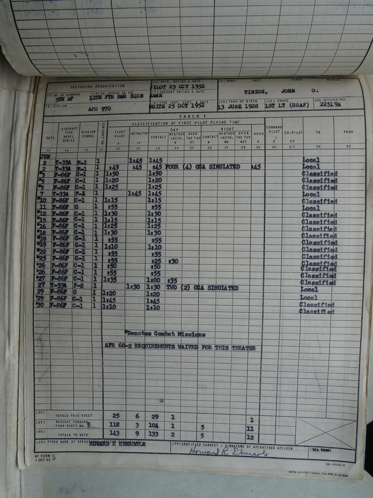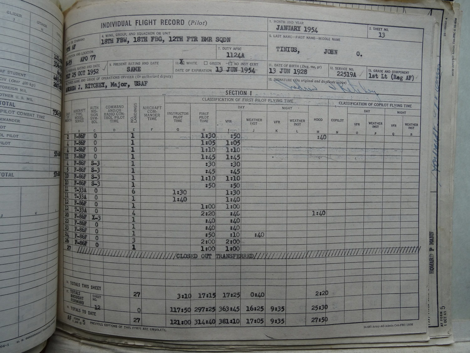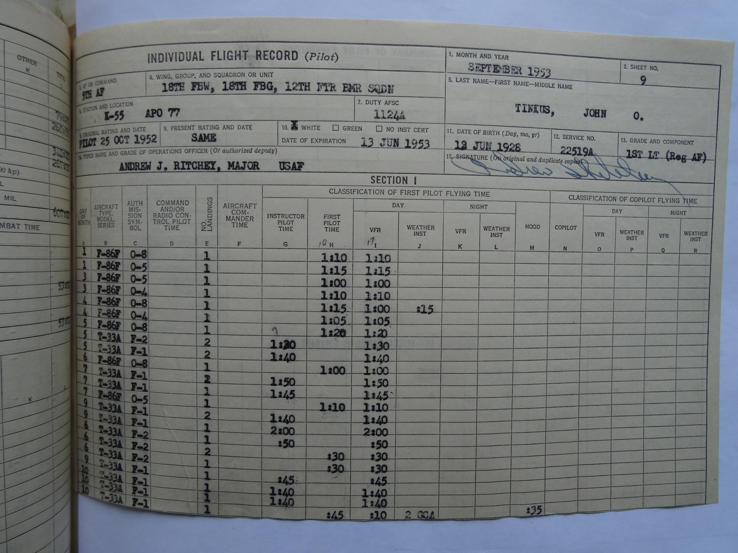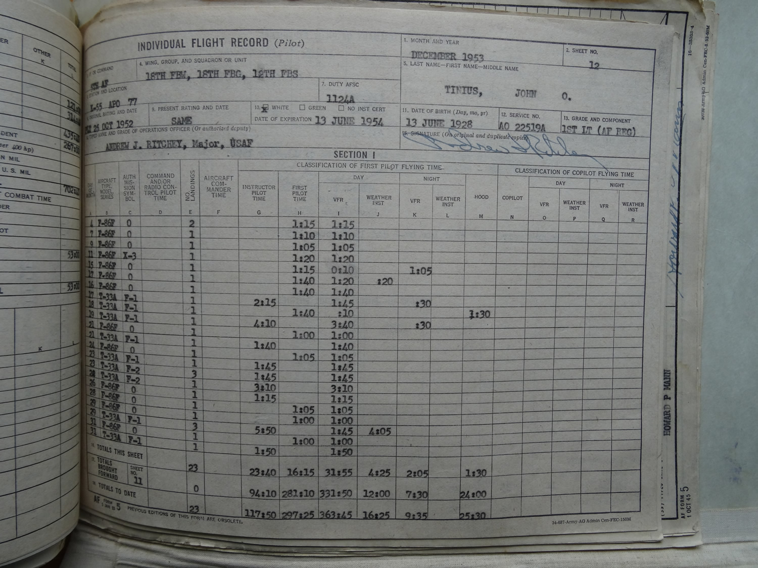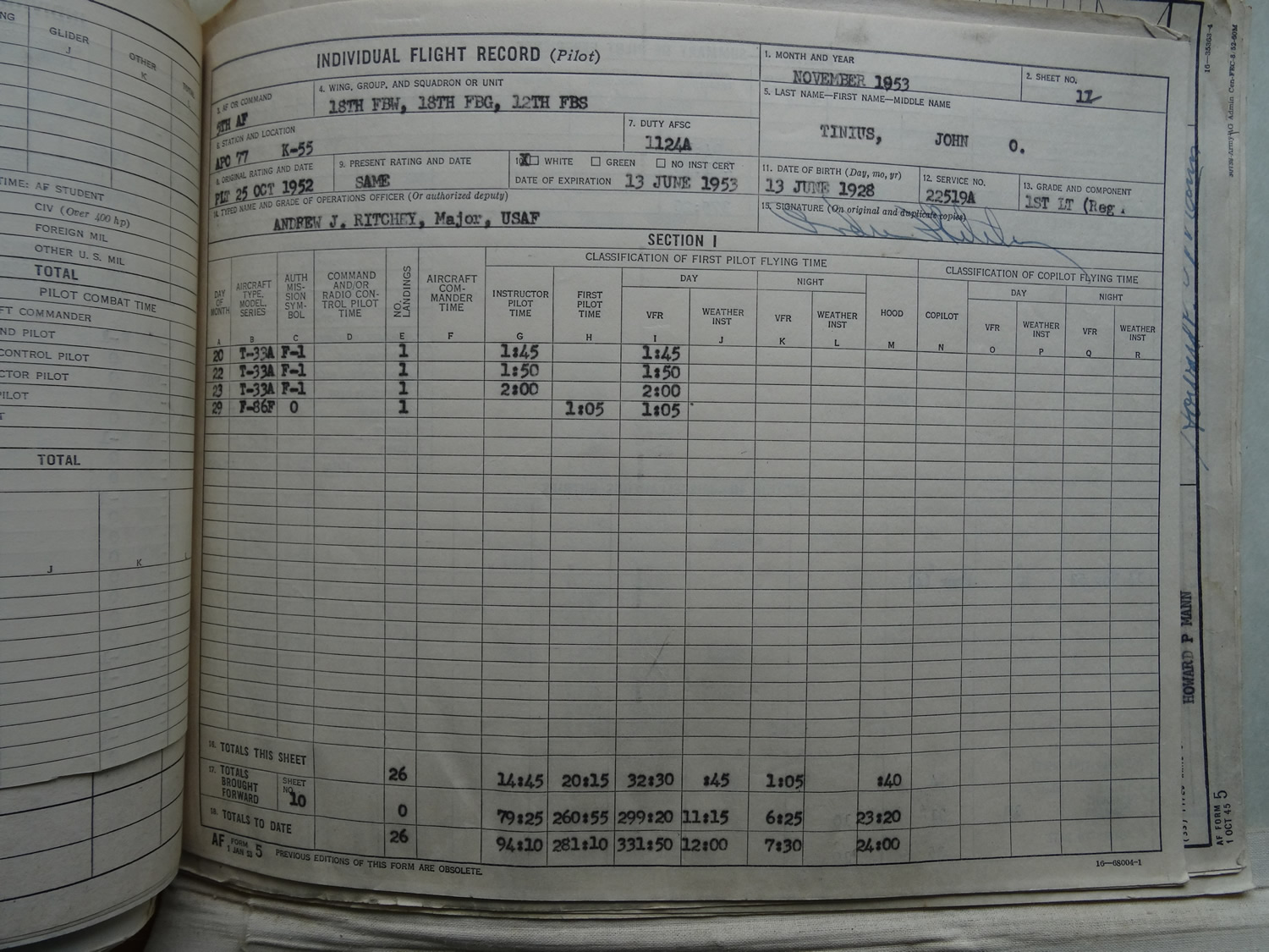 K-55 March 1953 to January 1954 12th FBS 18th FBG (Volume #1)